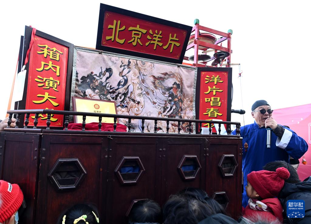 2月2日在位于北京中轴线上的什刹海拍摄的北京洋片摊位。
