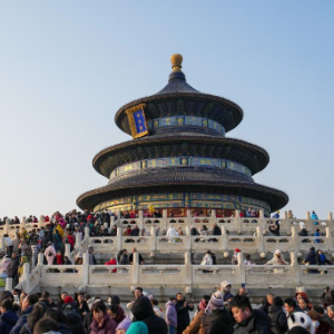 1月30日,游客在天坛公园观光游览。
