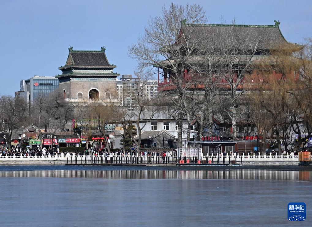 2月2日,游客在位于北京中轴线上的什刹海游玩。