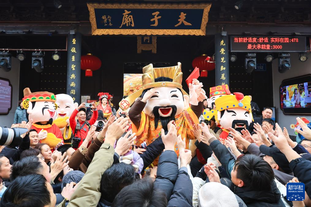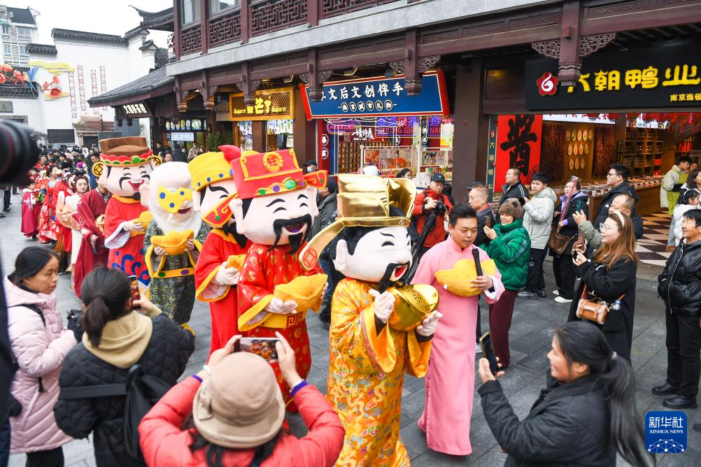 这是2月2日在江苏省南京市夫子庙景区拍摄的“迎财神”巡游活动现场。