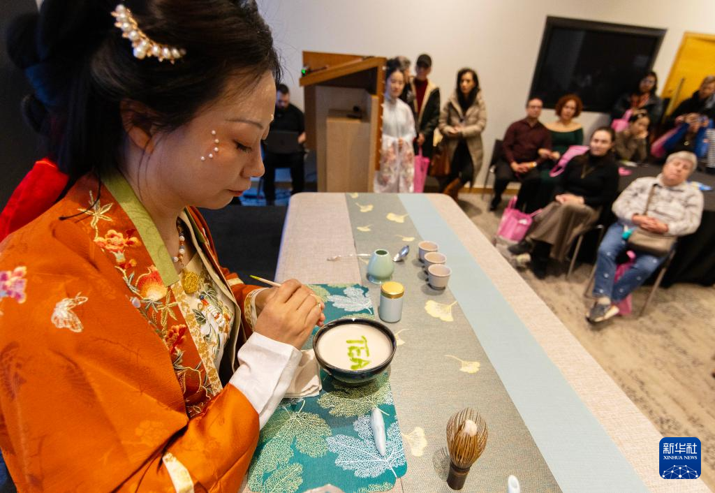 2月1日,一名茶艺技师在加拿大多伦多茶文化节上表演点茶。
