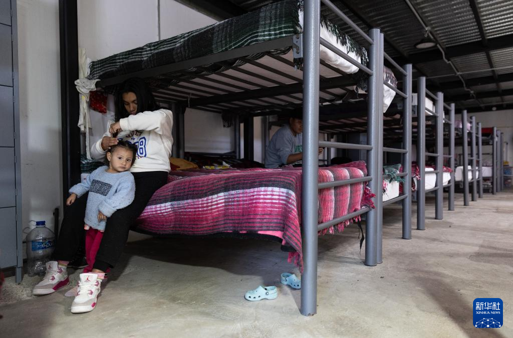 2月2日,在墨西哥奇瓦瓦州华雷斯城的一处移民收容所,一位母亲为女儿梳头。