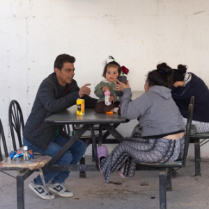 2月2日,人们在墨西哥奇瓦瓦州华雷斯城的一处移民收容所交谈。