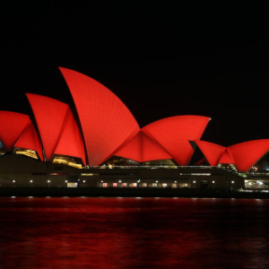 2月4日,澳大利亚悉尼歌剧院点亮“中国红”,庆祝中国农历新年。