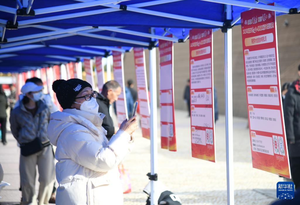 2月6日,在河北省石家庄市元氏县东张乡招聘活动现场,求职者查看就业信息。