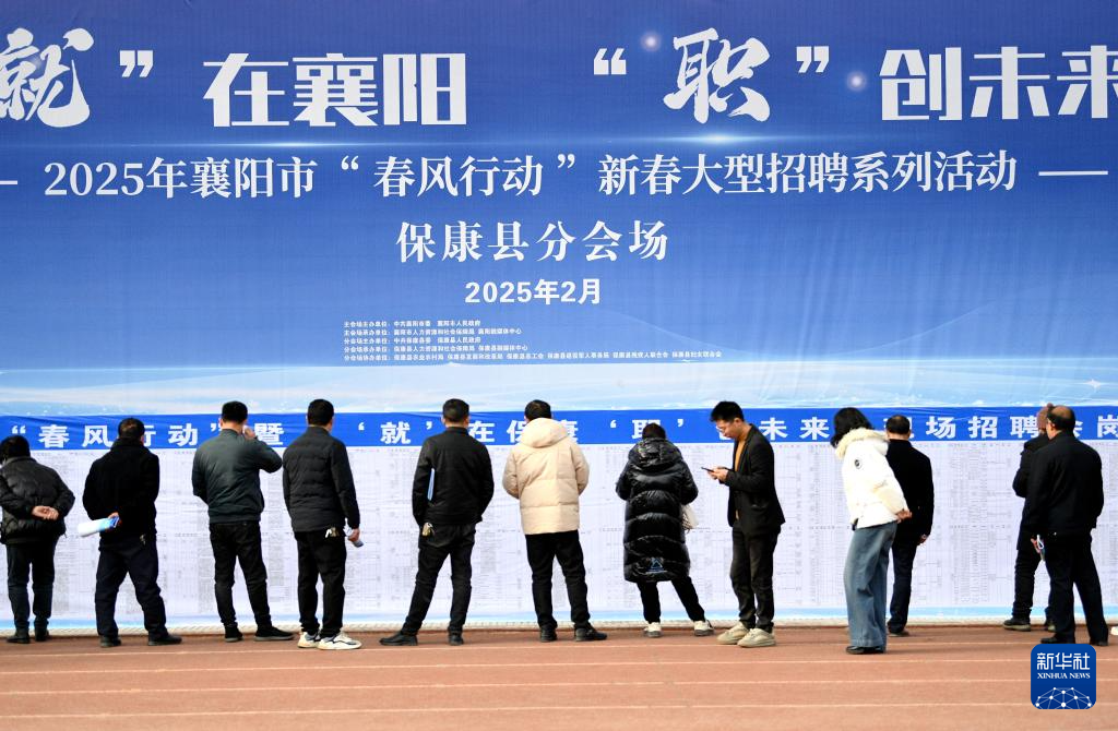 2月6日,求职者在湖北省襄阳市保康县“春风行动”大型招聘会上了解岗位信息。