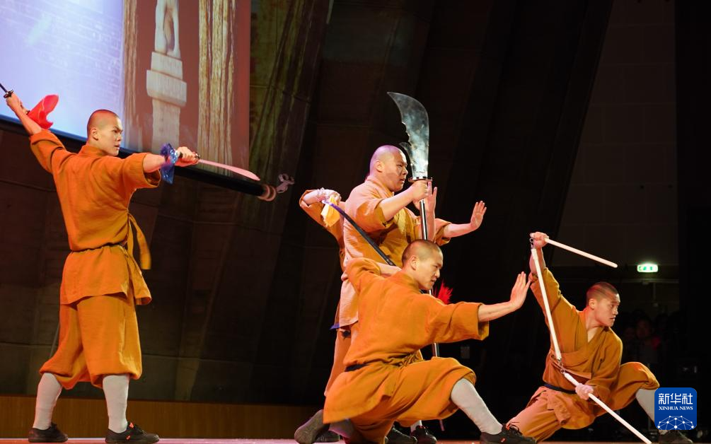 2月6日,在法国巴黎的联合国教科文组织总部,演员表演少林功夫《和·合》。