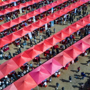 这是2月8日在福建省漳州市体育中心拍摄的招聘活动现场(无人机照片)。
