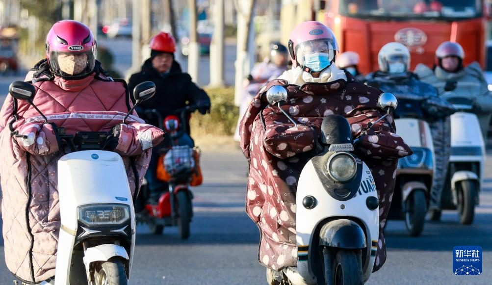 2月8日,在江苏省淮安市淮安区,市民骑车出行。