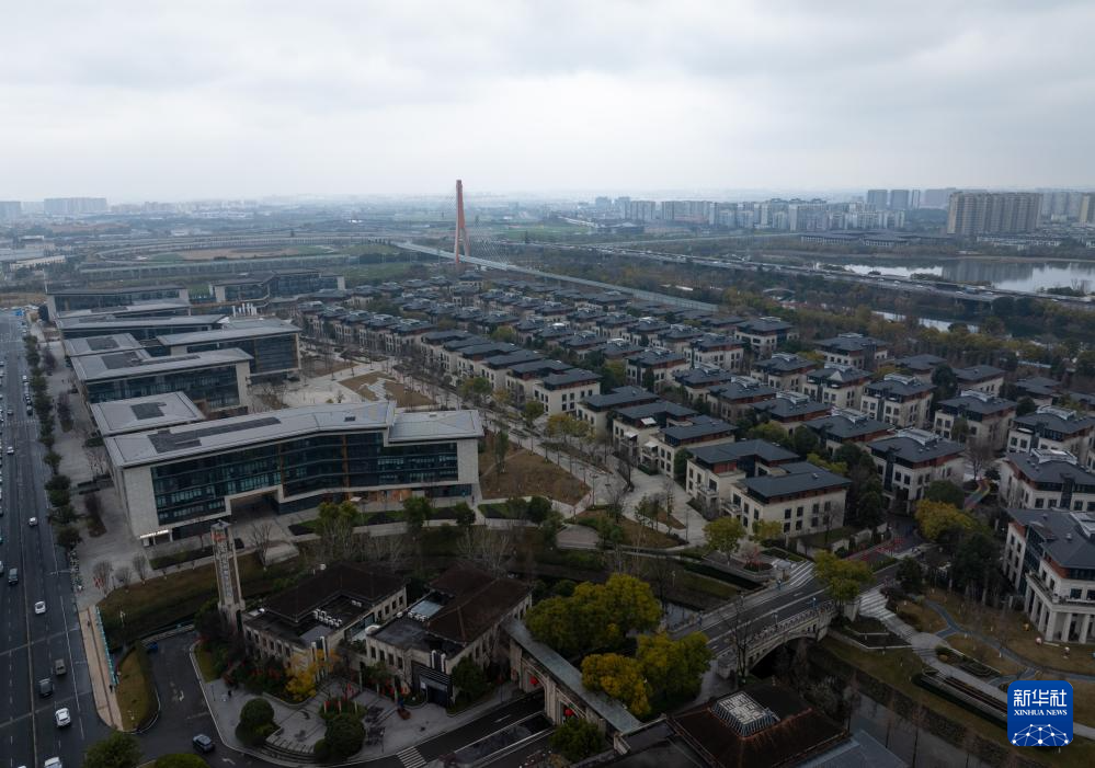 2月8日拍摄的成都可可豆动画影视有限公司所在的成都天府长岛数字文创园。《哪吒》系列电影由成都可可豆动画影视有限公司出品制作(无人机照片)。