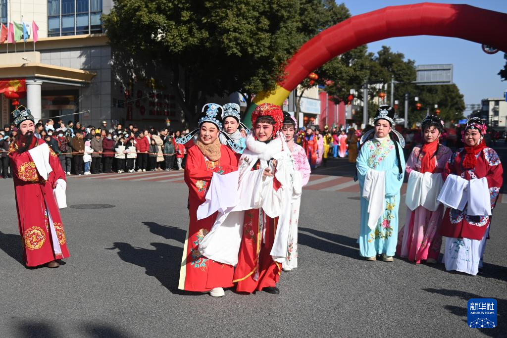 2月8日,乡村戏剧队在南浔区和孚镇街区表演。
