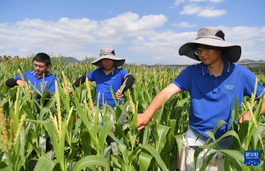 2月10日,在三亚市崖州湾科技城,隆平生物技术(海南)有限公司的科研人员为玉米杂交做准备。