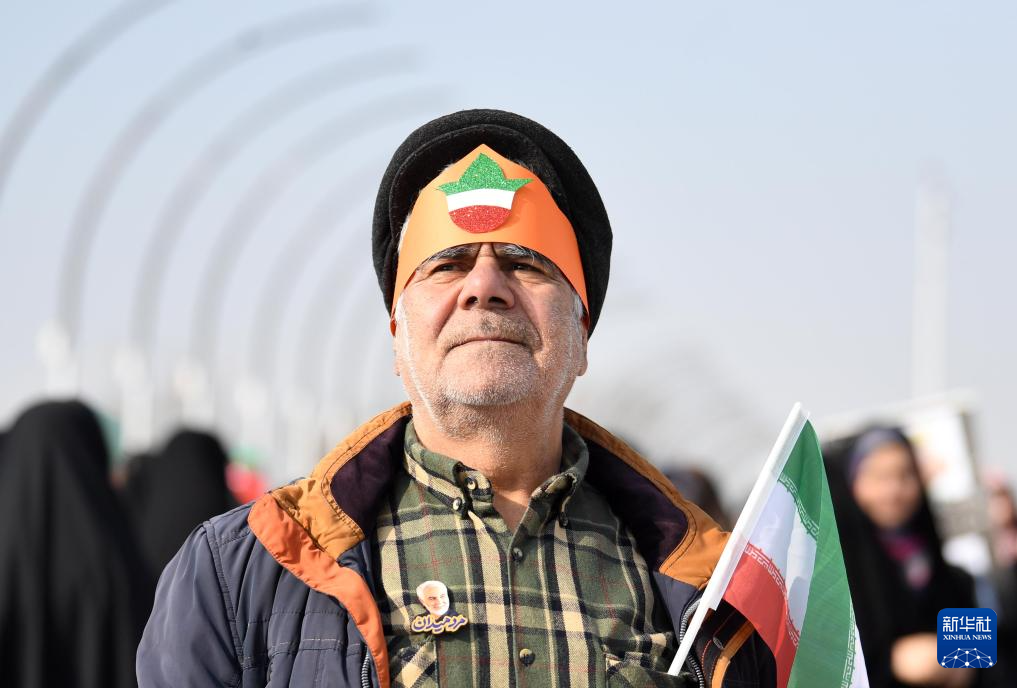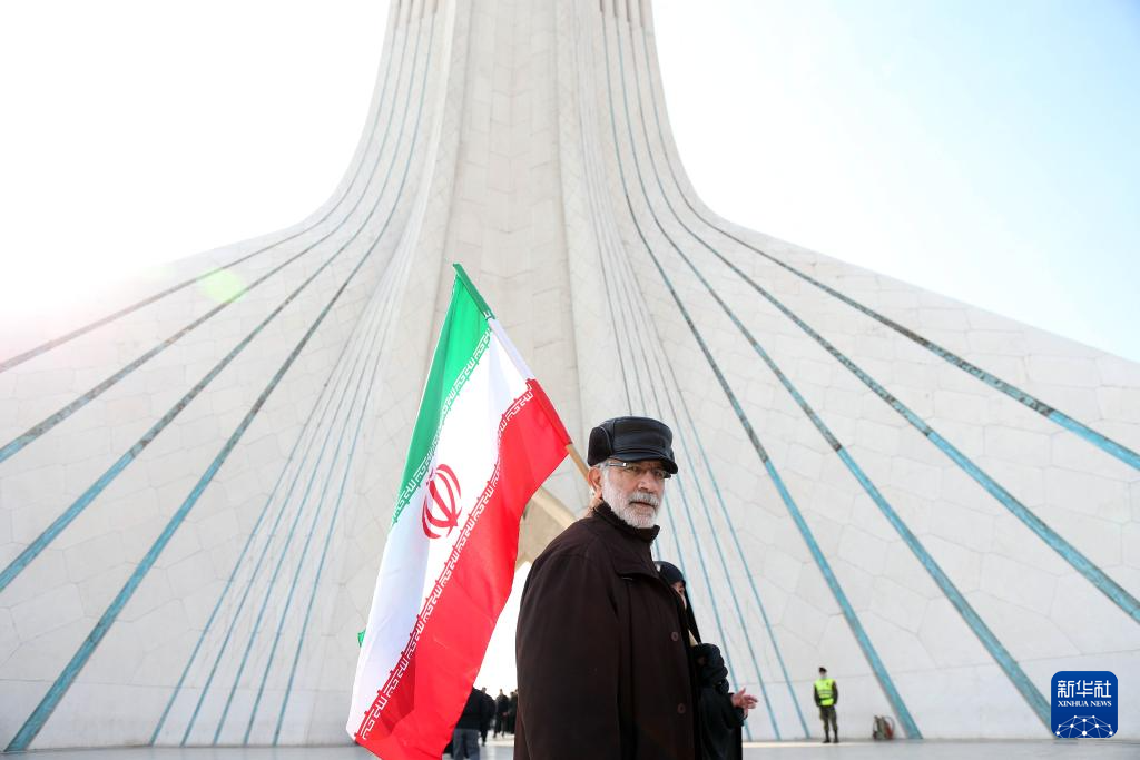 2月10日,在伊朗首都德黑兰阿扎迪广场,民众参加纪念伊朗伊斯兰革命胜利46周年集会。