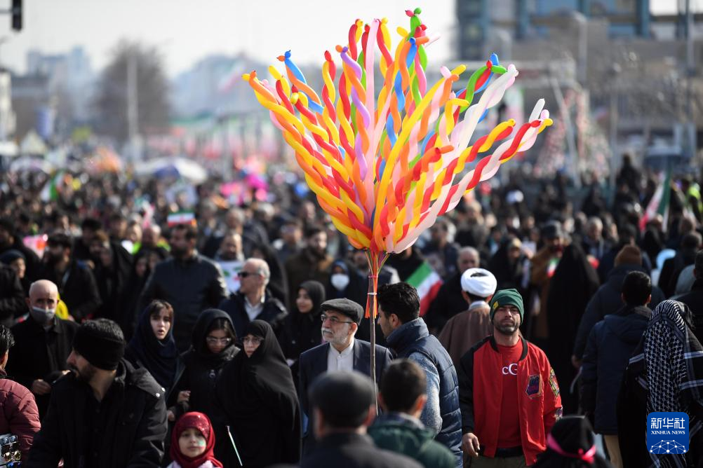 当天,伊朗全国各地民众走上街头,纪念伊朗伊斯兰革命胜利46周年。