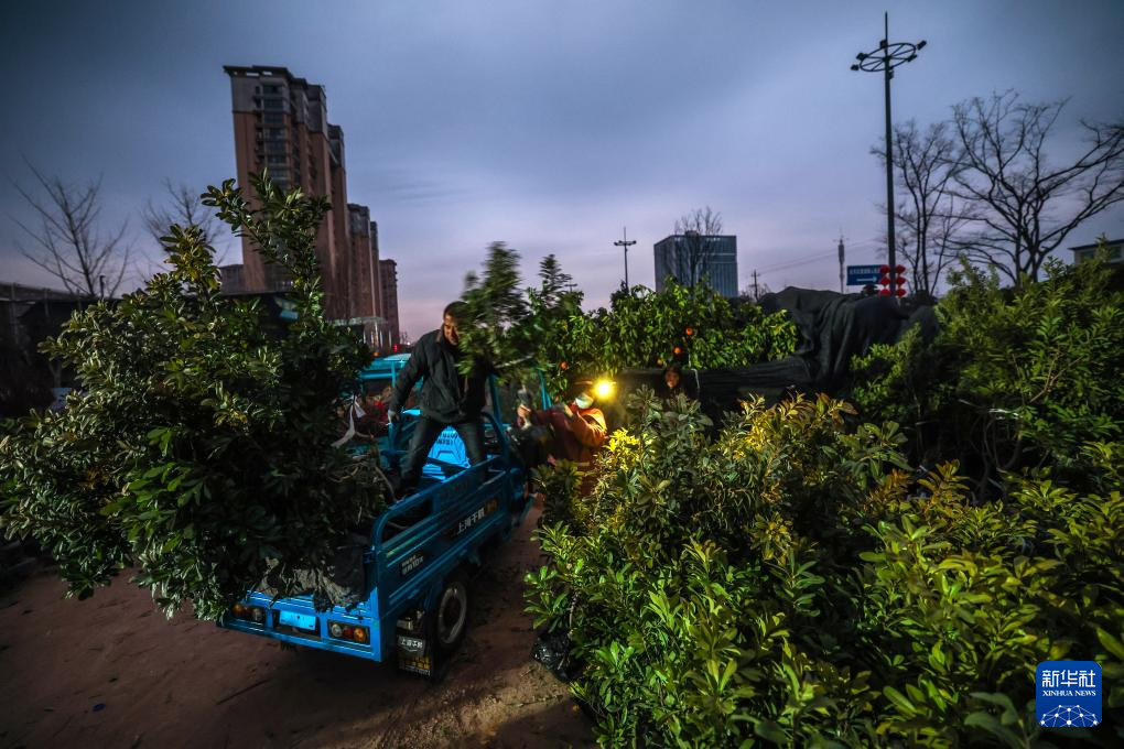 2月11日清晨,澧浦苗木城的商户把成交的苗木装车。