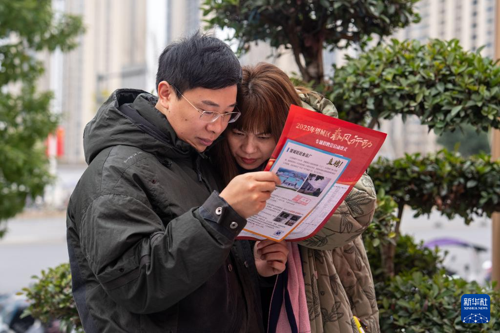 2月11日,市民在望城区龙湖月亮岛天街商场外坪了解岗位信息。