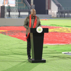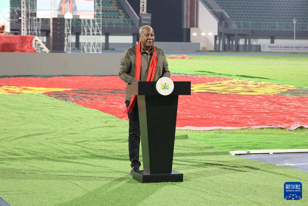 2月9日,加纳总统马哈马在首都阿克拉举行的元宵节庆祝活动上致辞。