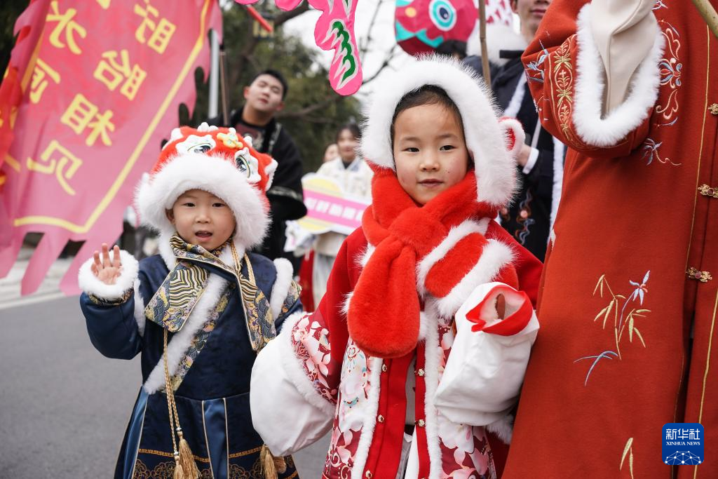2月11日,小朋友参加巡游。