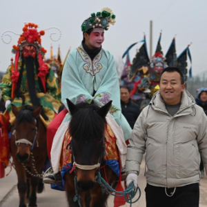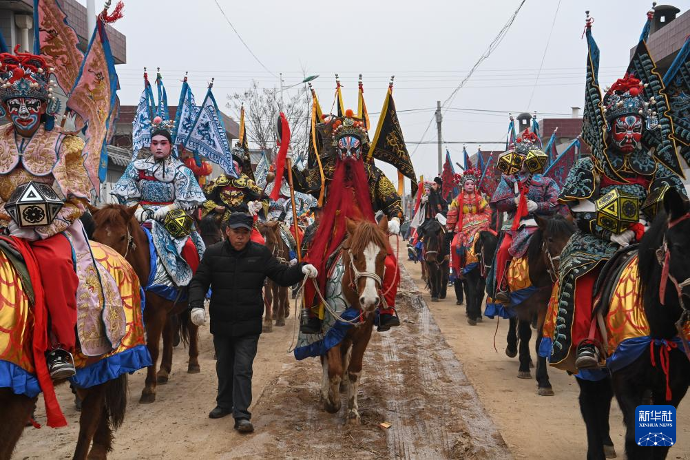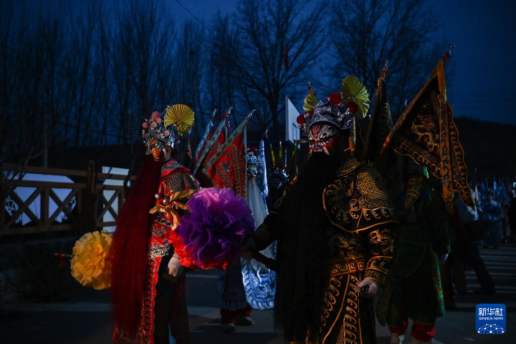 陇县东南镇黄花峪村是著名的“马社火村”,每年春节期间,村民都会表演马社火,挨家挨户送上新春祝福。为了在清晨出发,社火队通常在凌晨三四点就开始准备,演员、化妆师、锣鼓队和后勤保障人员从黑夜忙到天明,共同呈现黄土地上的新春文化盛宴。