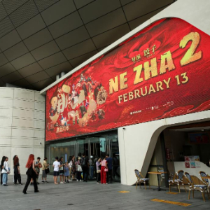 这是2月11日在澳大利亚悉尼IMAX影院前拍摄的《哪吒之魔童闹海》大屏。