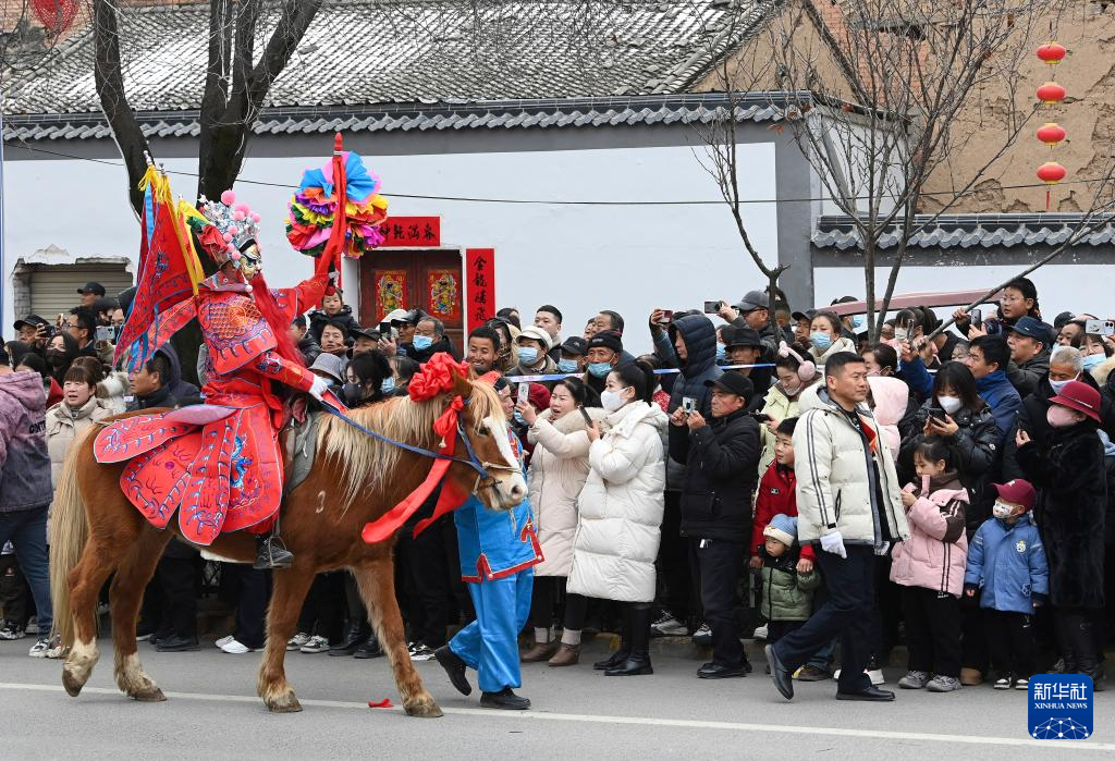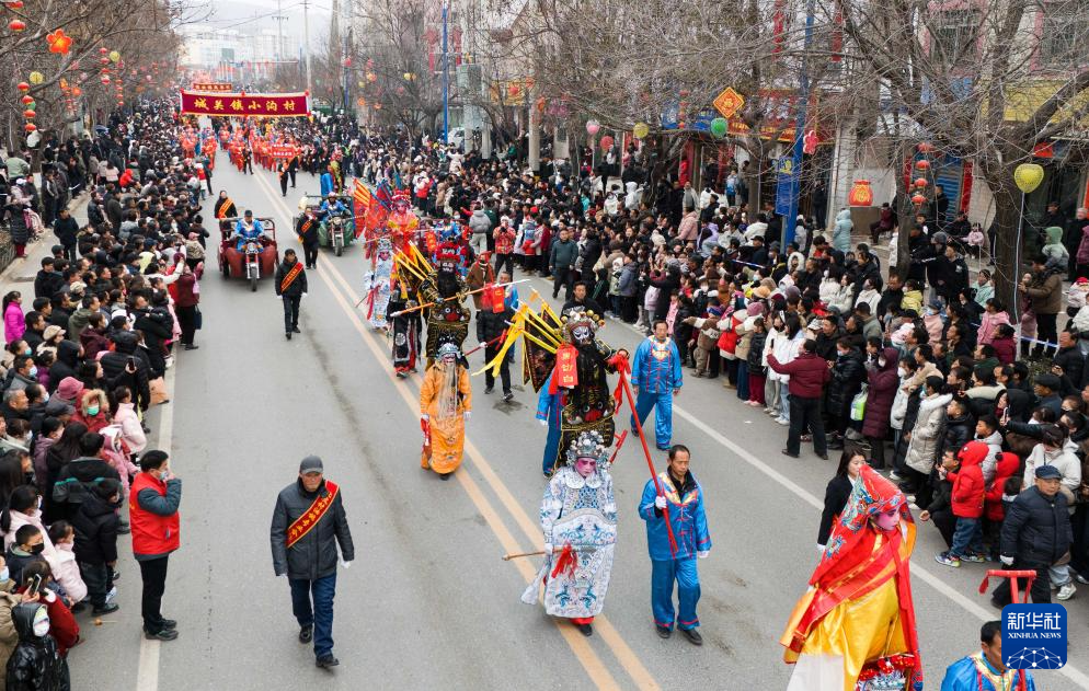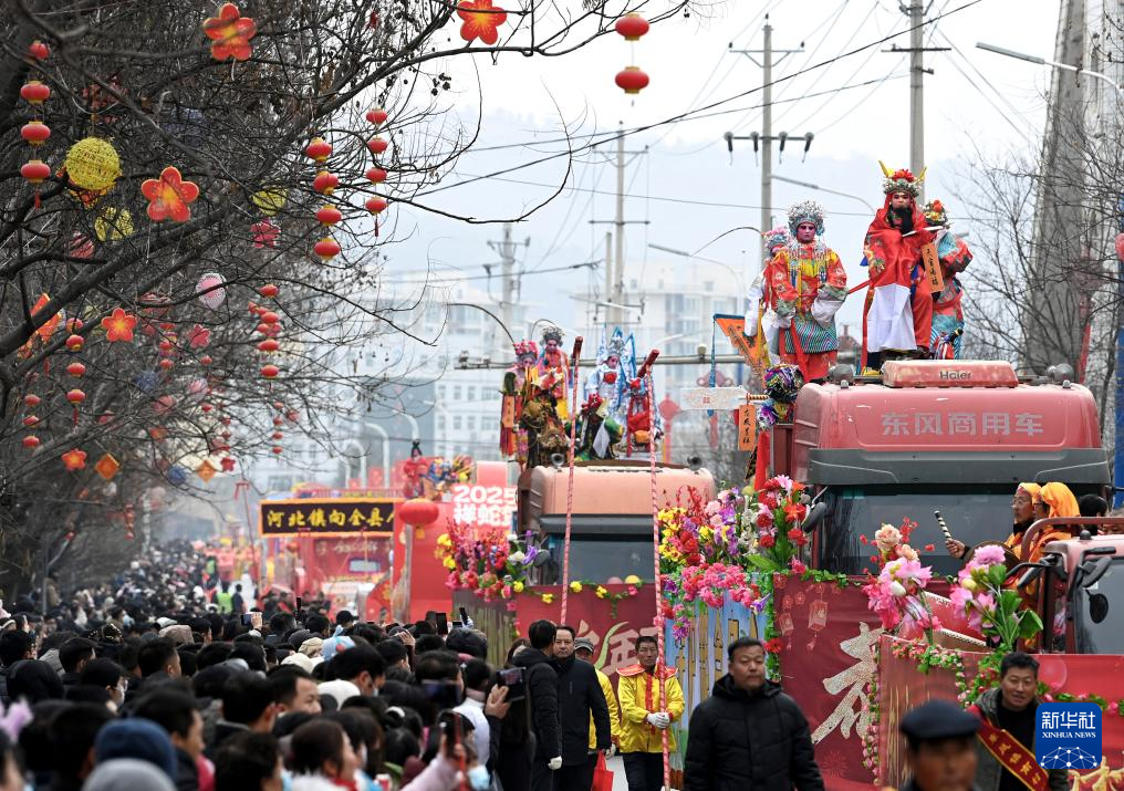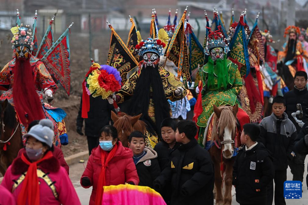 春节期间,“中国社火文化之乡”陕西省宝鸡市陇县年味十足,热闹非凡。从县城的大街小巷到乡村的田间地头,随处可见各类社火游演队伍。骑在马背上的“马社火”、将儿童架在肩上的“挈社火”、走村入户表演的“步社火”……各类社火特色鲜明,精彩纷呈,演绎神话传说和历史人物故事,营造出活力涌动、欢乐祥和的节日氛围。