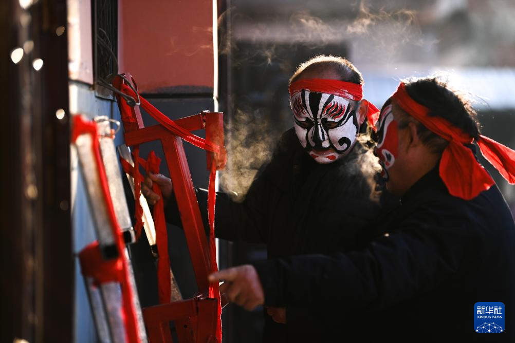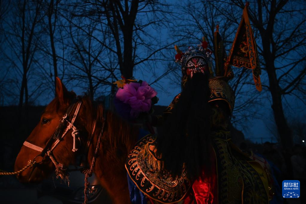 2月11日清晨,陇县黄花峪村的马社火演员准备出发游演。