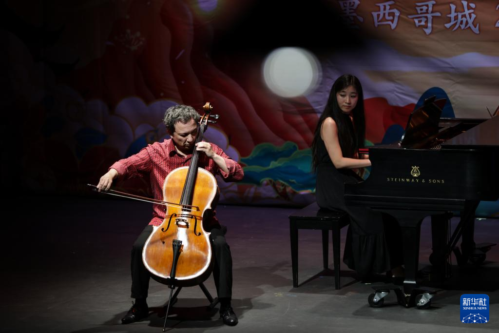 2月12日,大提琴家朱亦兵在墨西哥首都墨西哥城举办的音乐会上演奏。