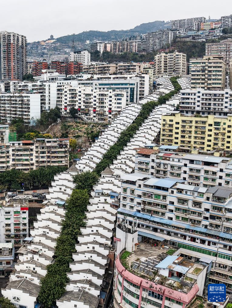 这是2月12日拍摄的重庆奉节城区步云街一带景象。