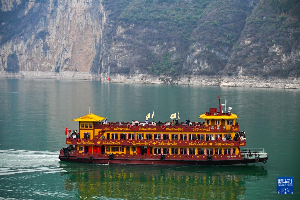 2月13日,游轮行驶在重庆奉节瞿塘峡一带。
