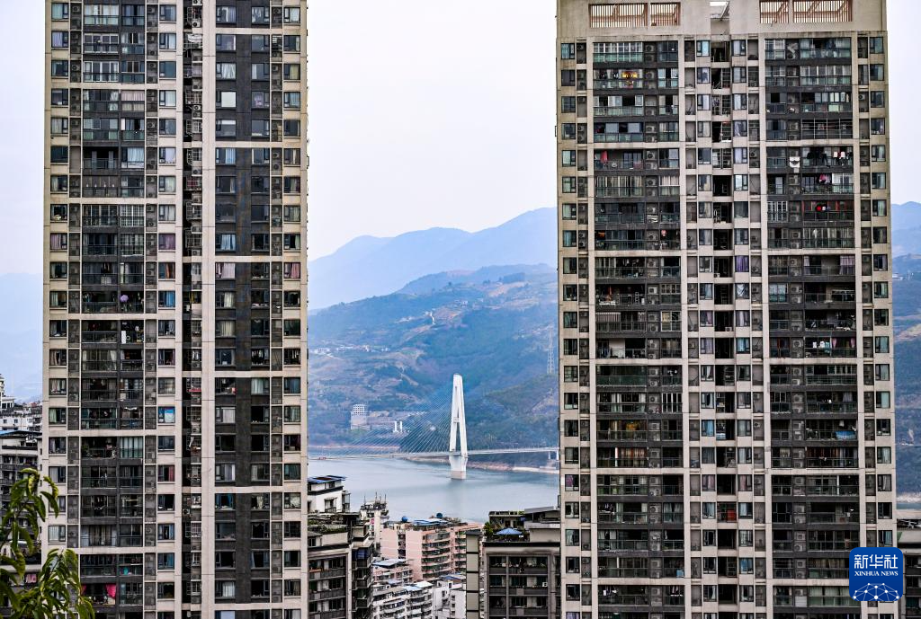 这是2月12日拍摄的重庆奉节城区及夔门长江大桥景象。