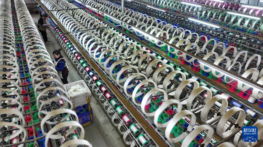 2月12日,在四川省南充市嘉陵工业集中区的一家纺织公司车间内,工人在翻丝。