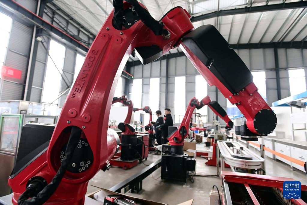 2月11日,在江西省宜春市万载县工业园区一家企业生产车间内,工人对机器臂订单进行系统编程。