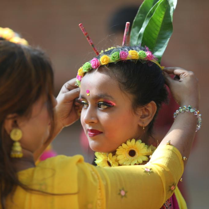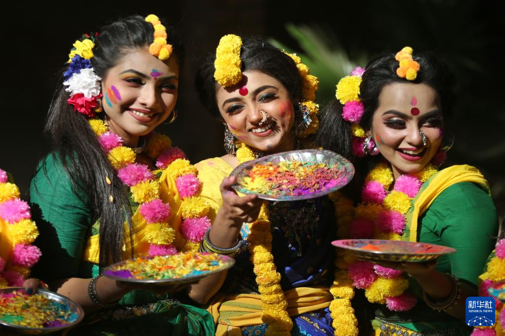 孟加拉历第11月的第一天是“开春节”,孟加拉国的女性会在这一天盛装打扮、佩戴鲜花饰品,参加庆祝活动,迎接春天的开始。