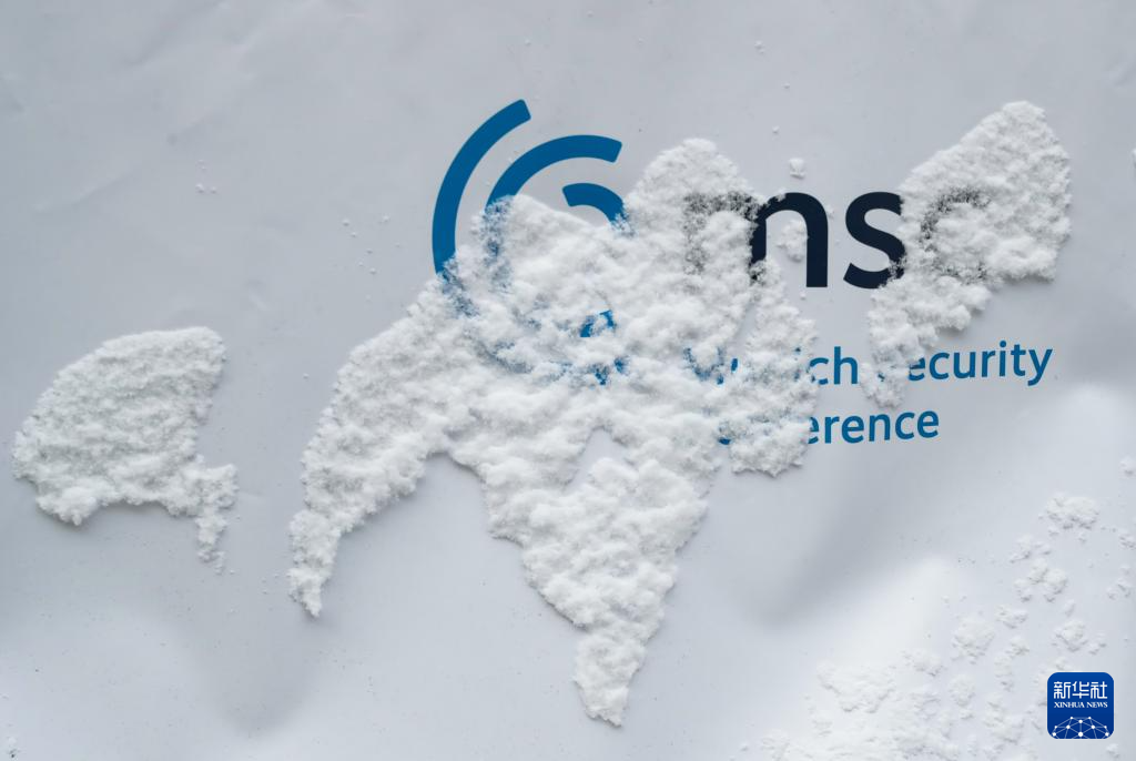这是2月16日在德国慕尼黑拍摄的被积雪覆盖的慕安会标识。