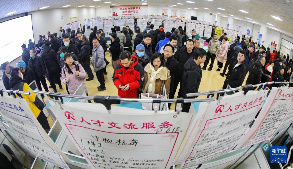 2月15日,在河北省秦皇岛市人才市场,求职者了解招聘信息。