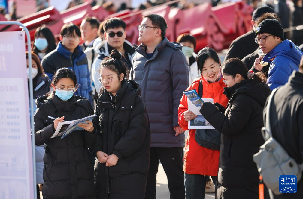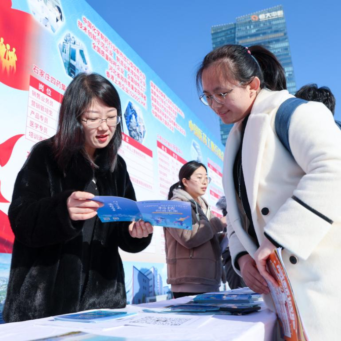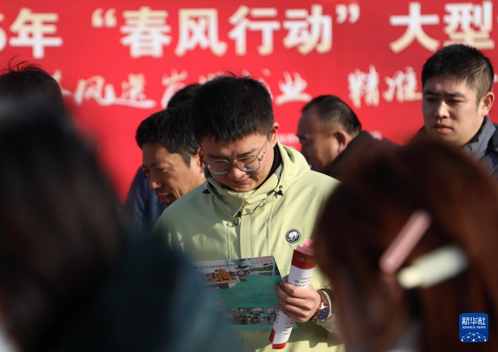 2月15日,在石家庄市解放广场举行的2025年河北省春季大型招聘会上,求职者了解招聘信息。