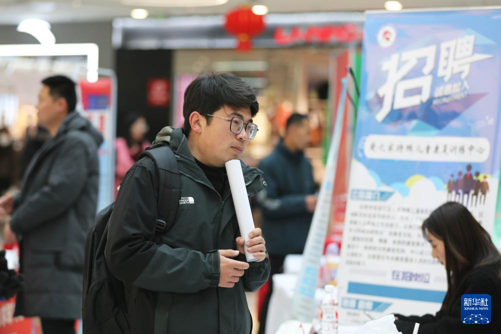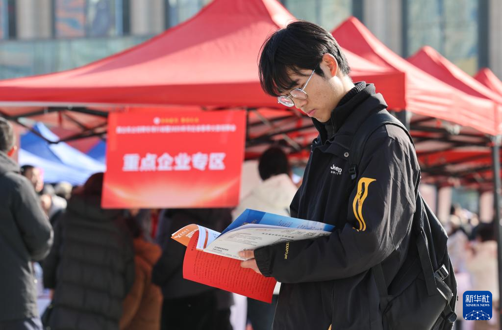 2月15日,在石家庄市解放广场举行的2025年河北省春季大型招聘会上,一名求职者在查看招聘信息。