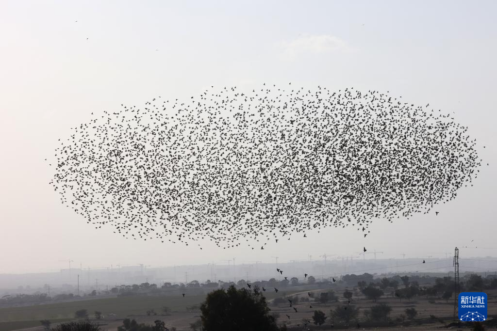 2月16日,椋鸟翔集以色列南部城市贝尔谢巴上空。