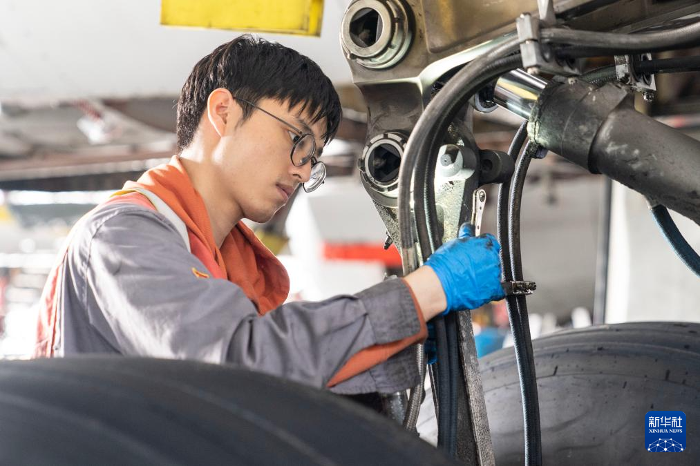 2月17日,在海南自贸港一站式飞机维修产业基地,海航技术旗下大新华飞机维修服务有限公司工作人员对进境飞机进行检修。
