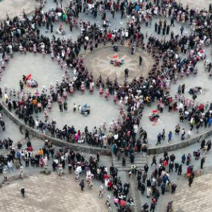 这是2月16日拍摄的贵州省凯里市舟溪镇“甘囊香”芦笙节活动现场(无人机照片)。