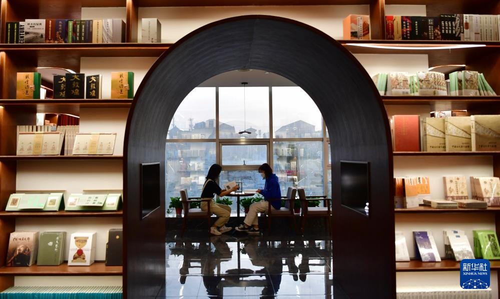 2022年4月21日,读者在敦煌书局阅读区看书。