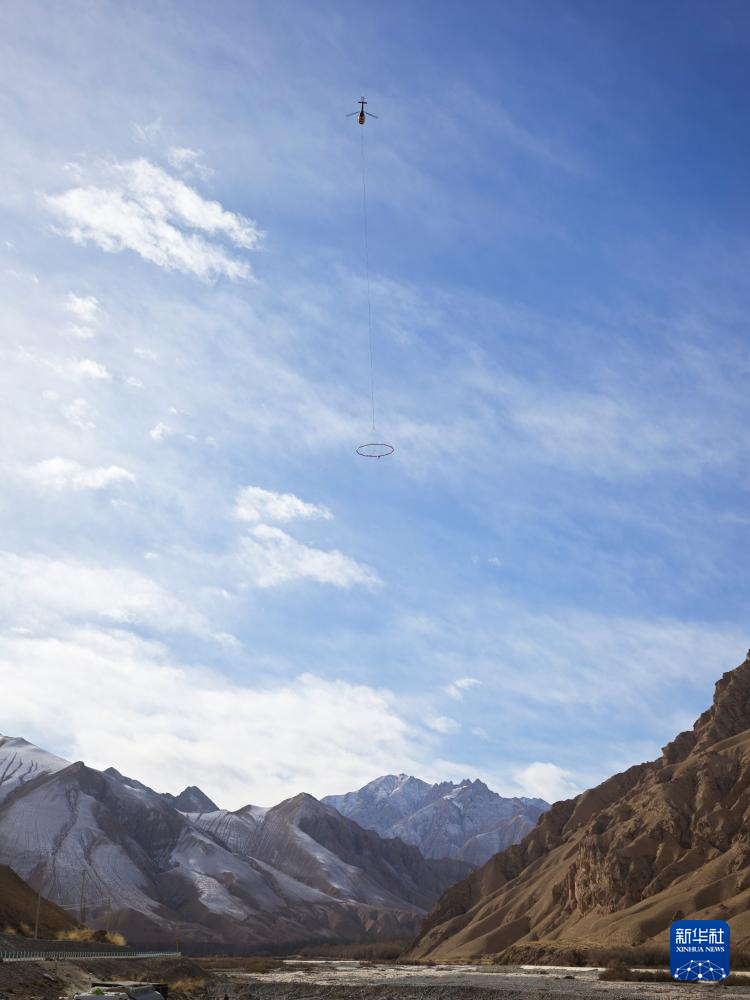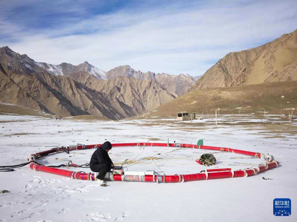 2025年1月11日,科研人员在新疆和田地区测试航空大地电磁探测系统。