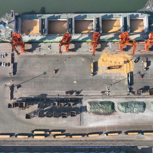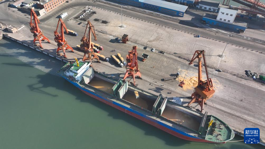 连日来,辽港集团营口港码头车船如织,一场大规模的粮食“迁徙”正值高峰。营口港位于辽东半岛中部,拥有8个粮食装卸泊位和3条铁路运粮专线,粮食中转量长期位居北方港口之首,成为“北粮南运”的主枢纽港。2024年,营口港散粮业务吞吐量同比增长8.8%,粮食中转量达3000余万吨。
