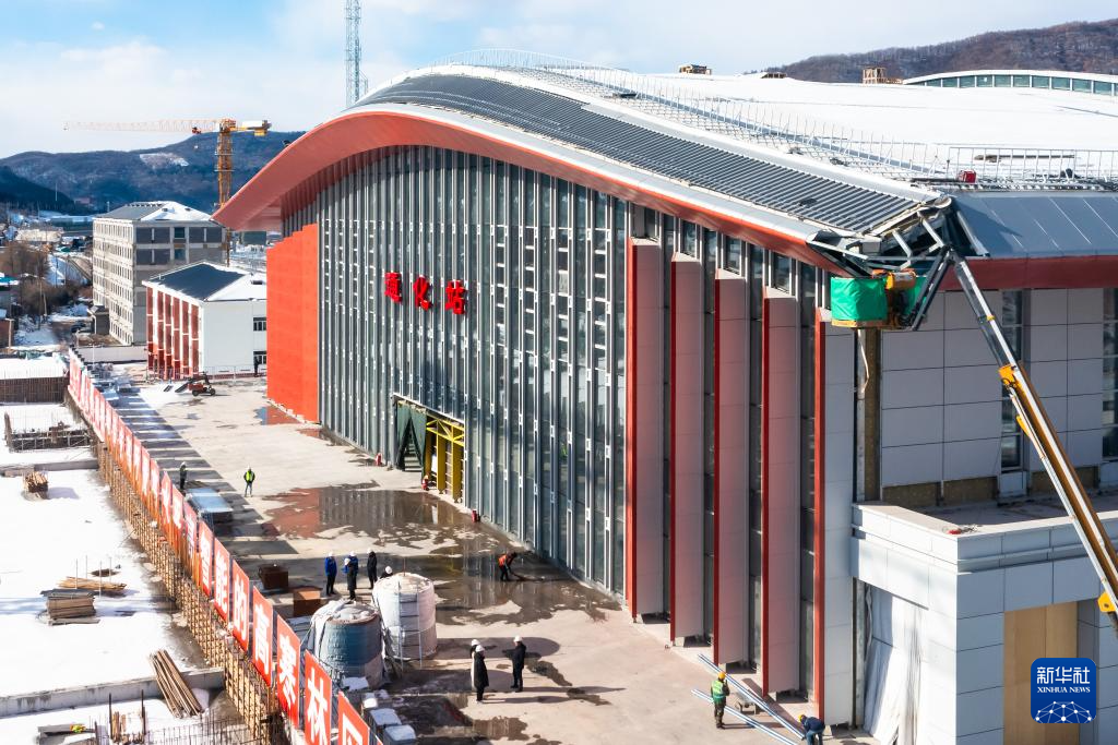 这是2月18日拍摄的通化站建设现场(无人机照片)。