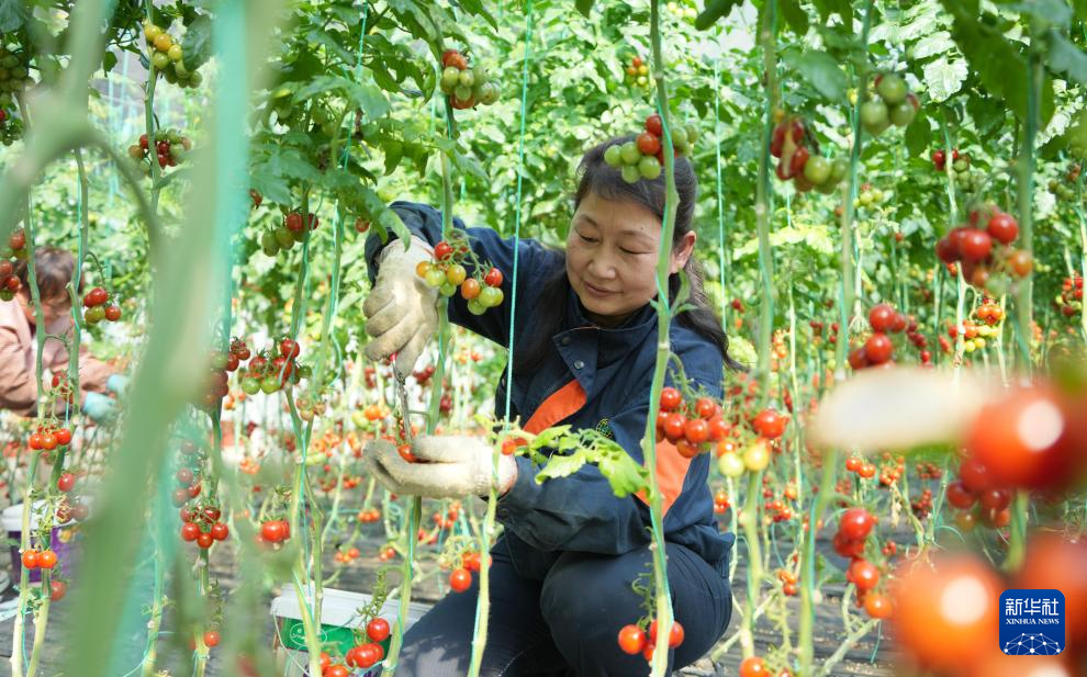 2月19日,在山东省潍坊市寒亭区前阙庄村,村民在收获西红柿。