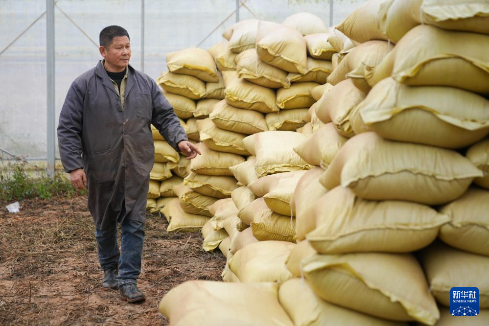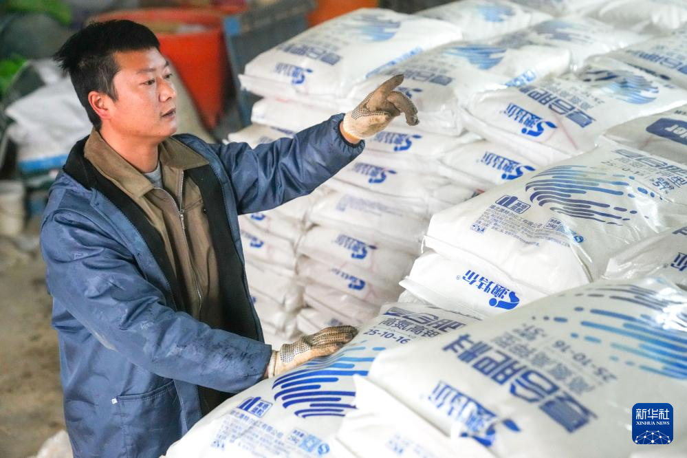 2月20日,在湖南省浏阳市龙伏镇的鼎钧种养专业合作联合社,工作人员在清点肥料。