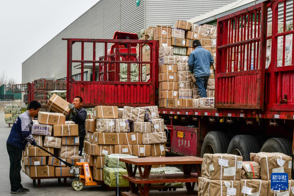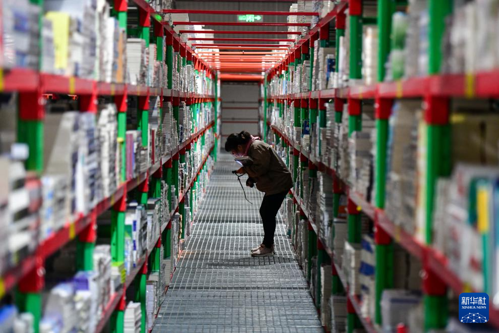 2月20日,一家公司的工作人员在分拣包装书籍。