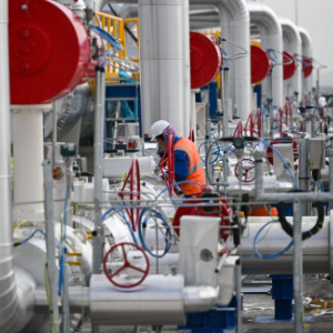 2月12日,一名工人在土耳其阿克萨拉伊省的图兹湖地下天然气储库扩建项目地面场站工作。