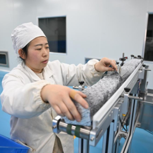 2月21日,工人在内蒙古兴安盟乌兰浩特市内蒙古奥特奇蒙药股份有限公司车间放置药品。