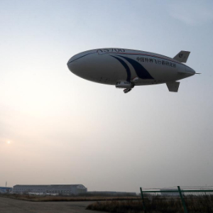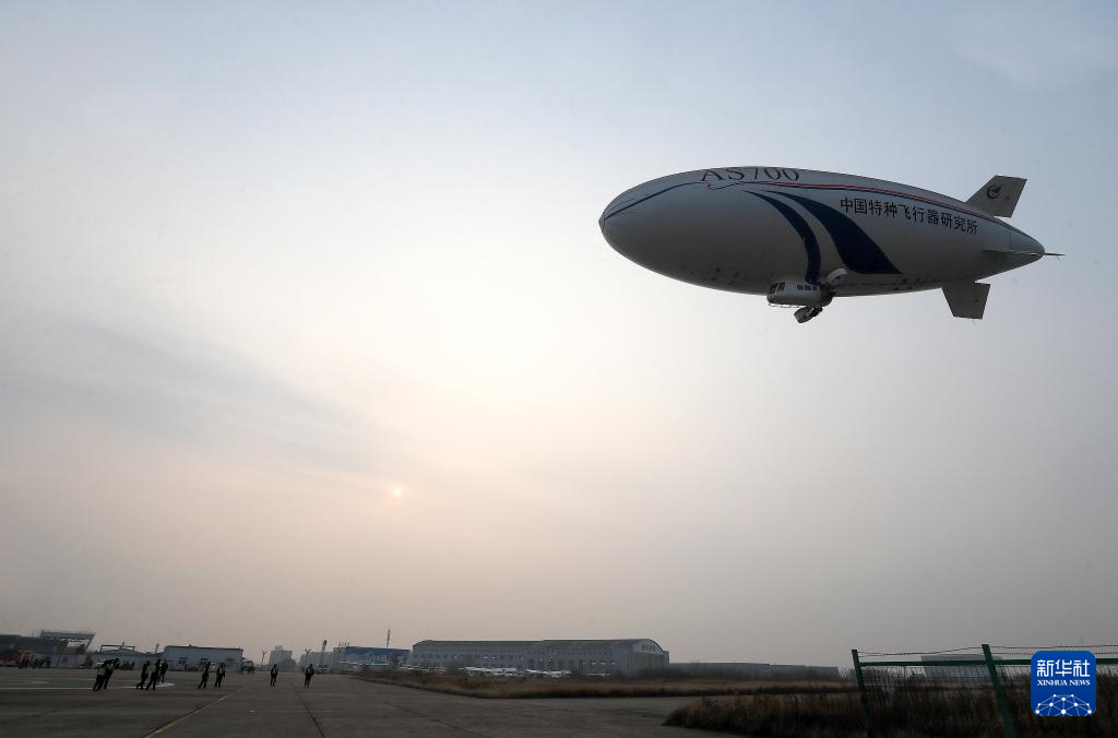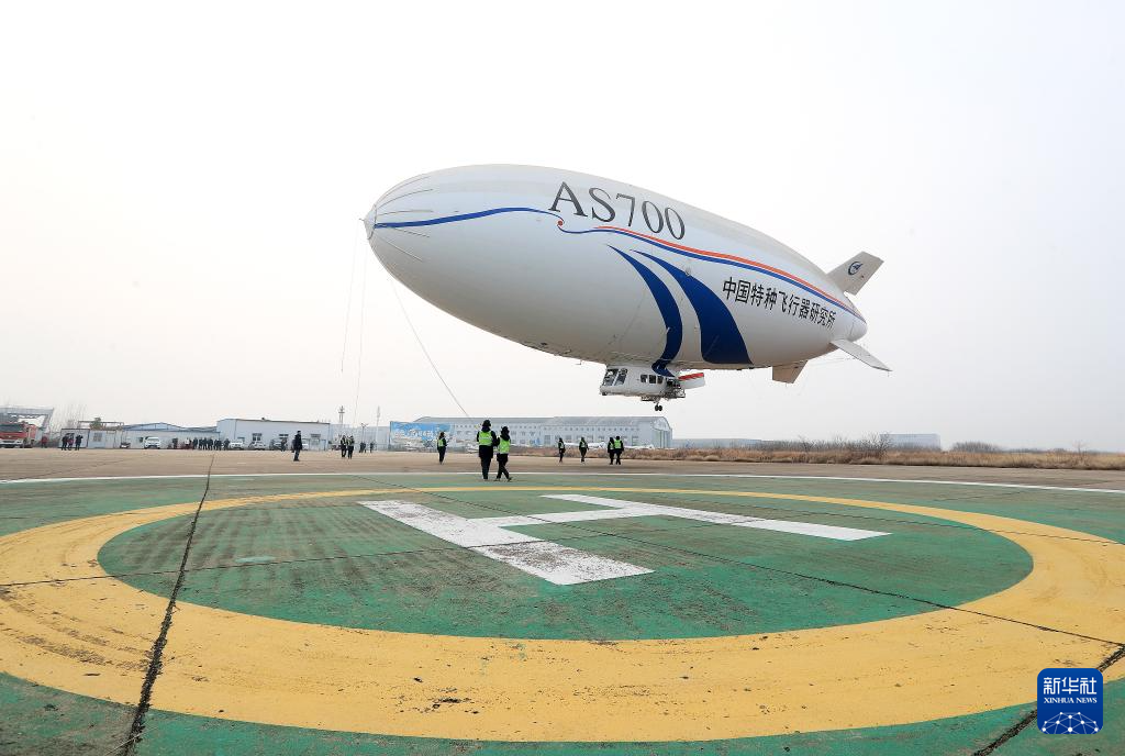 这是2月21日拍摄的国产电动型飞艇AS700D。